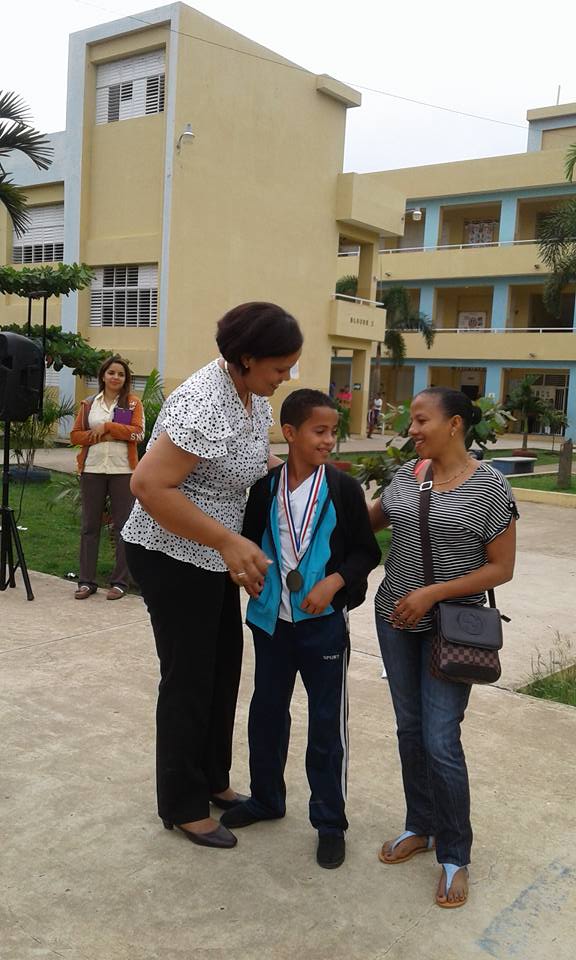 Nos sentimos felices y orgullosos de nuestro estudiante Ricardo Samir quien se destacó por su excelente participación en las olimpiadas de matemática y hoy recibe junto a su madre Arelis Mora una medalla de reconocimiento.16-3-2017.